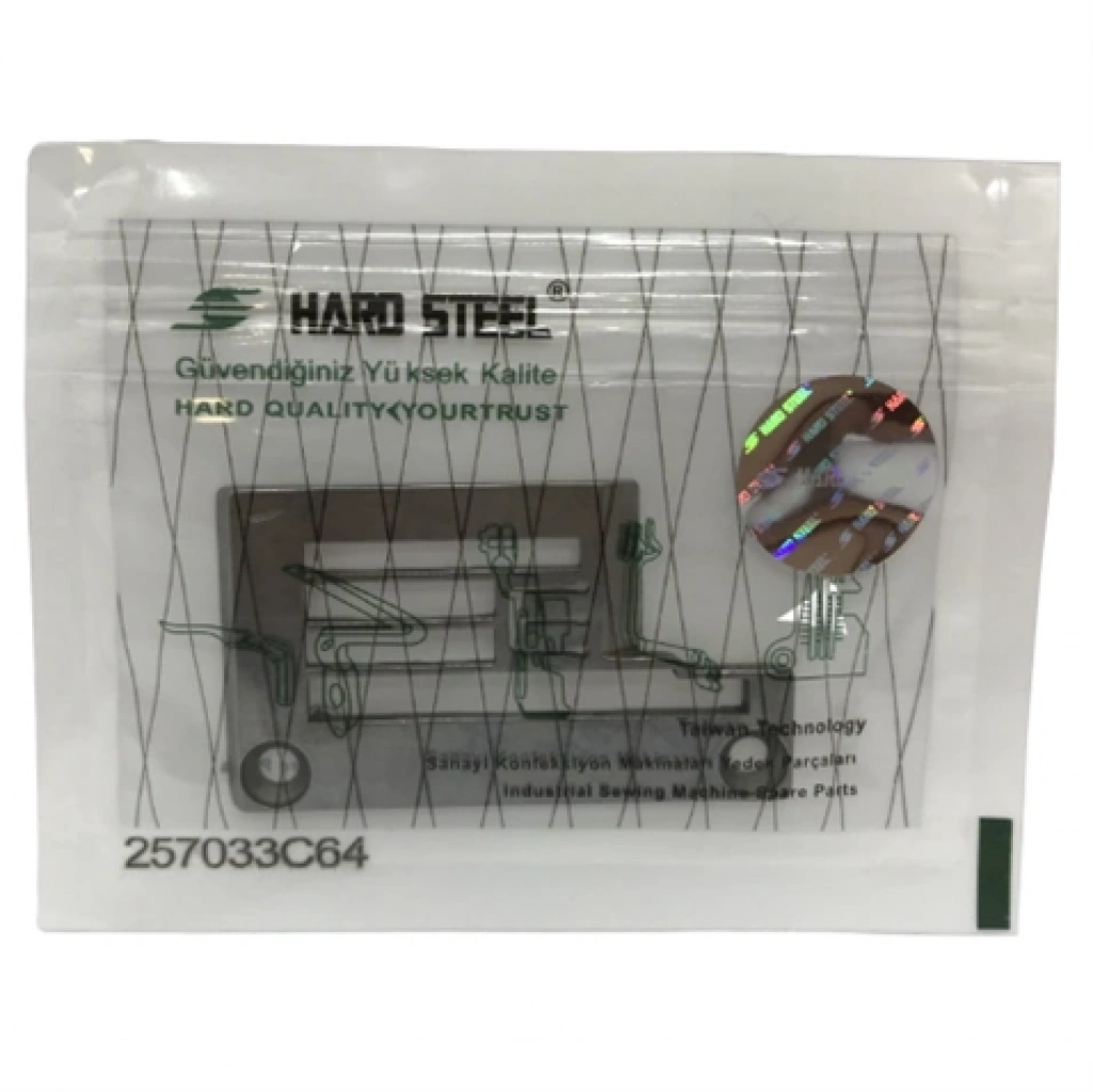 Açıklama: Sanayi tipi dikiş makinelerine uygundur. Dikiş makinesin de plaka ve ekipmanlarının görevi, plakanın üzerine bağlı bulunan dişlinin düzenli bir şekil de çalışmasını ve lüper ile iğnenin sekronize ve aynı hizada çalışmasını sağlamaktır.